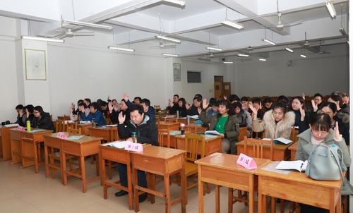 會議聽取了《院長工作報(bào)告》、《2018年度財(cái)務(wù)工作報(bào)告》、《2018年工會工作報(bào)告》和《2018年工會經(jīng)費(fèi)使用情況報(bào)告》,聽取了《教師工作量計(jì)算辦法》和《教職工年度考核辦法》的修訂說明。通過現(xiàn)場舉手表決,與會全體教職工一致通過了上述文件。會議還聽取了《提案征集情況報(bào)告》,改選了工會委員。