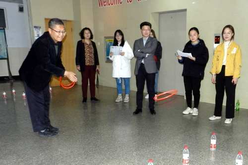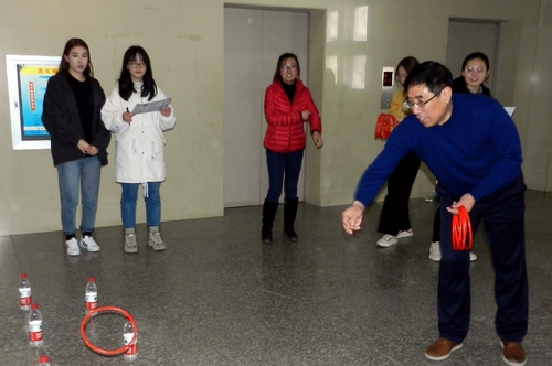 活動中,學院教職工踴躍參加了足式保齡球、套圈、接繡球等趣味小游戲。大家歡聚在一起,切磋技藝,相互鼓舞。活動現(xiàn)場氣氛活躍,充滿歡聲笑語。