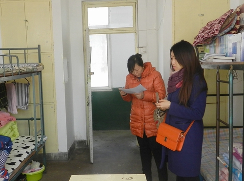 為了落實(shí)學(xué)校安全穩(wěn)定會(huì)議精神,2015年1月6日上午,學(xué)院黨委副書記、副院長(zhǎng)李寶文帶領(lǐng)全體輔導(dǎo)員和部分班主任對(duì)學(xué)生宿舍進(jìn)行安全衛(wèi)生大檢查。本次共檢查宿舍294個(gè),檢查內(nèi)容為學(xué)生宿舍的門、床、窗及用電的安全狀況及宿舍衛(wèi)生情況。大家對(duì)每個(gè)宿舍都認(rèn)真的檢查,對(duì)在宿舍學(xué)生進(jìn)行安全衛(wèi)生教育,對(duì)設(shè)備報(bào)檢保修程序和方法進(jìn)行指導(dǎo)。經(jīng)過檢查,學(xué)院大多數(shù)宿舍整潔有序,安全狀況整體良好。